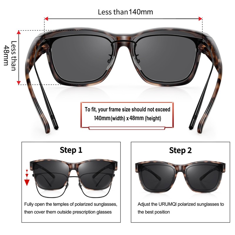 - About lenses: the polarized sunglasses are specially designed for those who wear normal prescription glasses, easily wear over existing glasses (frame length within 5.59 inches frame height within 1.57 inches), people wear contact lenses or with normal vision can also wear them on their own