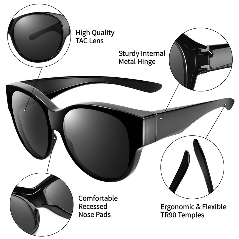 - FITS OVER REGULAR GLASSES: Our sunglasses are designed for people who wear round-syle glasses. They easily fit over glasses with a frame length within 5.67 inches and frame height within 1.97 inches, making them convenient and comfortable to wear