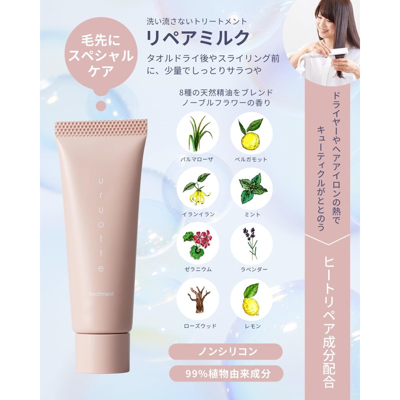 uruotte Trial Set Shampoo 1.4 fl oz (40 ml) 3 Types + Repair Milk 0.5 oz (15 g)