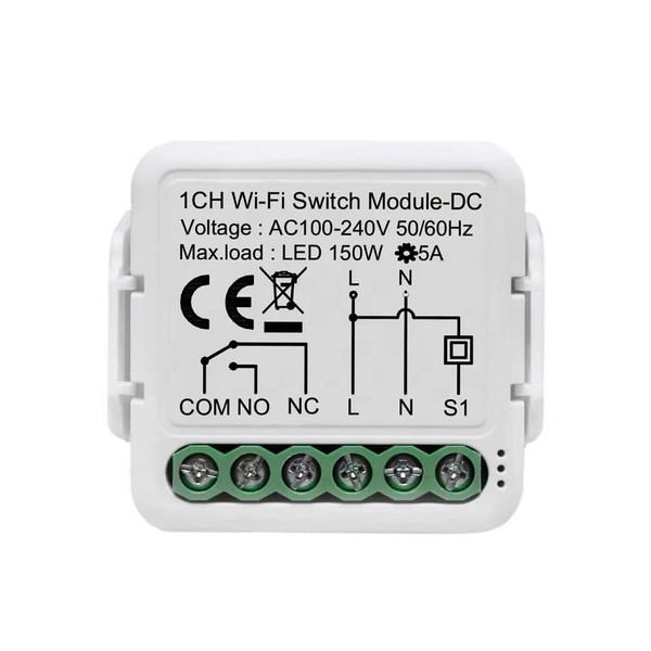 - Safety Features: Equipped with overload protection and a NO/NC terminal for connecting external switches or sensors.Come with tiny din rail enclosure,easy to smart your wall light switch,set inching mode in tuya app to automate your gate door access