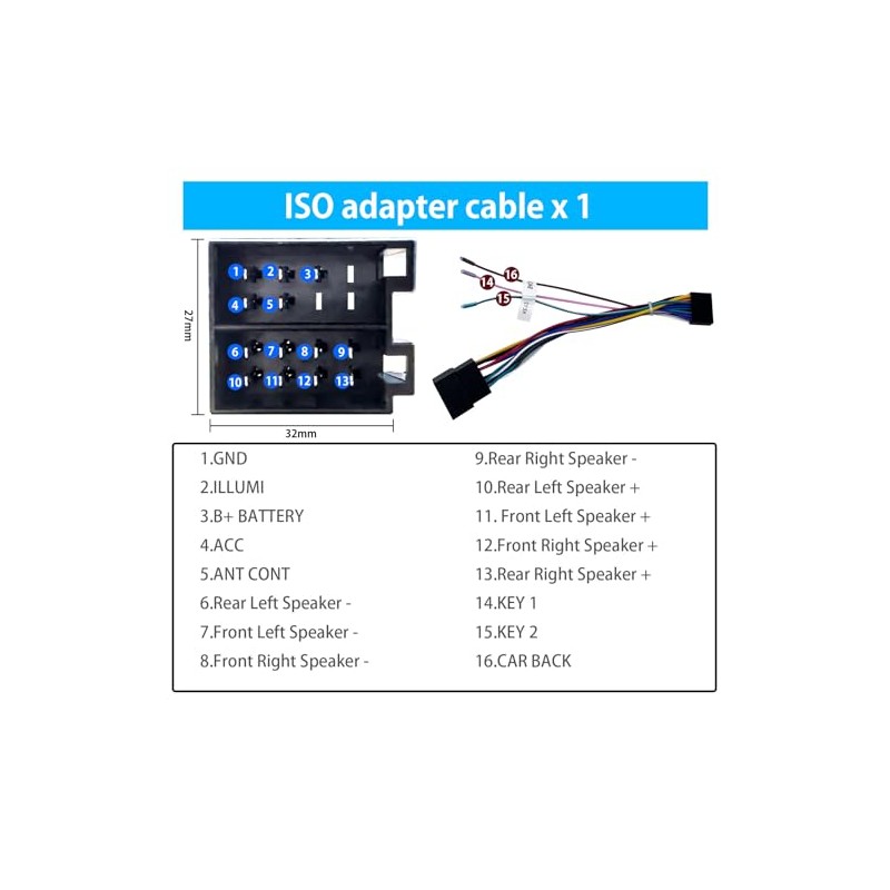 - Please do not buy the iOS wiring harness again when you purchased our URVOLAX car radio (ISO cable is included in the radio).