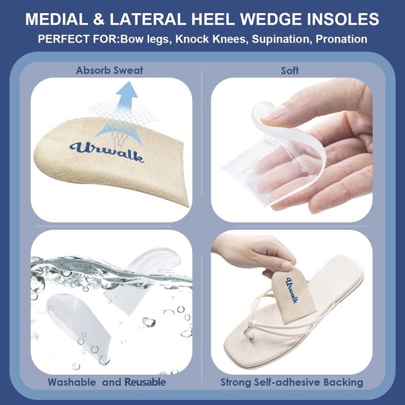 Urwalk's Adjustable Supination Insoles & Overpronation Insoles, Medial & Lateral Heel Cups for Foot Alignment, Knee Pain, Bow Legs, Osteoarthritis