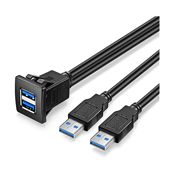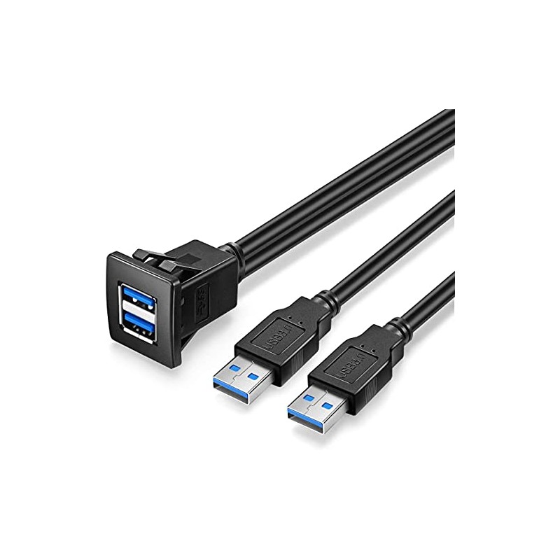 URWOOW Dual USB3.0 Square Flush Mount - 2M 6ft USB 3.0 Extension Mount, Dash Mount, Flush Mount, Panel Mount Cable, for Car, Boat, Motorcycle (6 feet) - Black