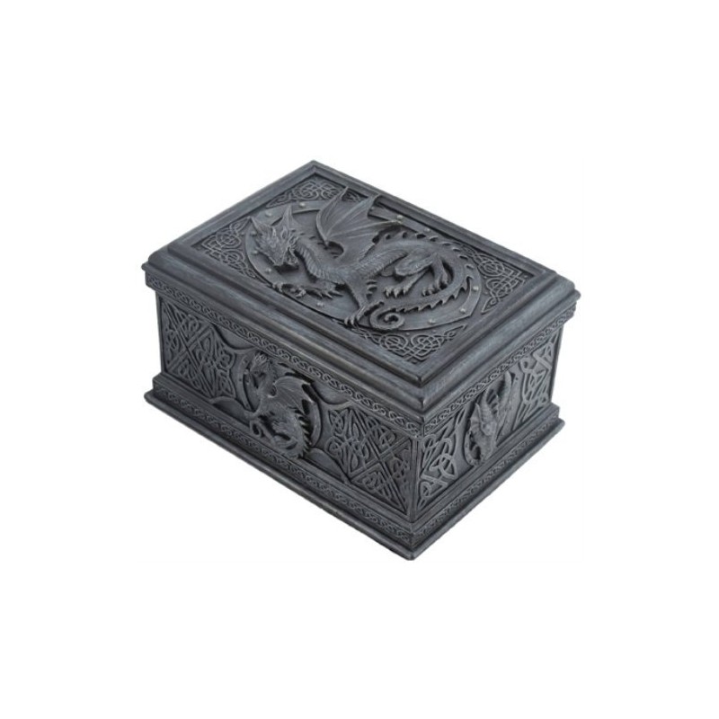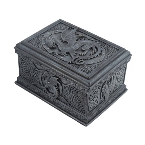 US 5.75 Inch Celtic Dragon Textured Decorative Trinket Box, Black