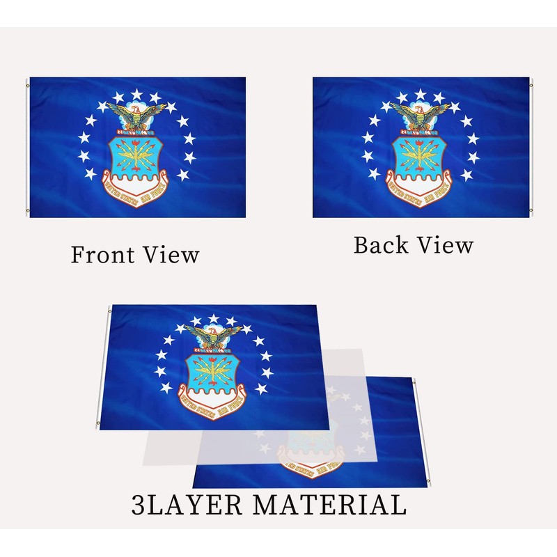 - 🌟[DOUBLE SIDED 3 PLY ]-- Our Air force flag 2x3 is made of 3 layers fabric, can reads correctly from both sides .The middle one is shading layer, can effectively extend the life of the flag (Excluding the pole)