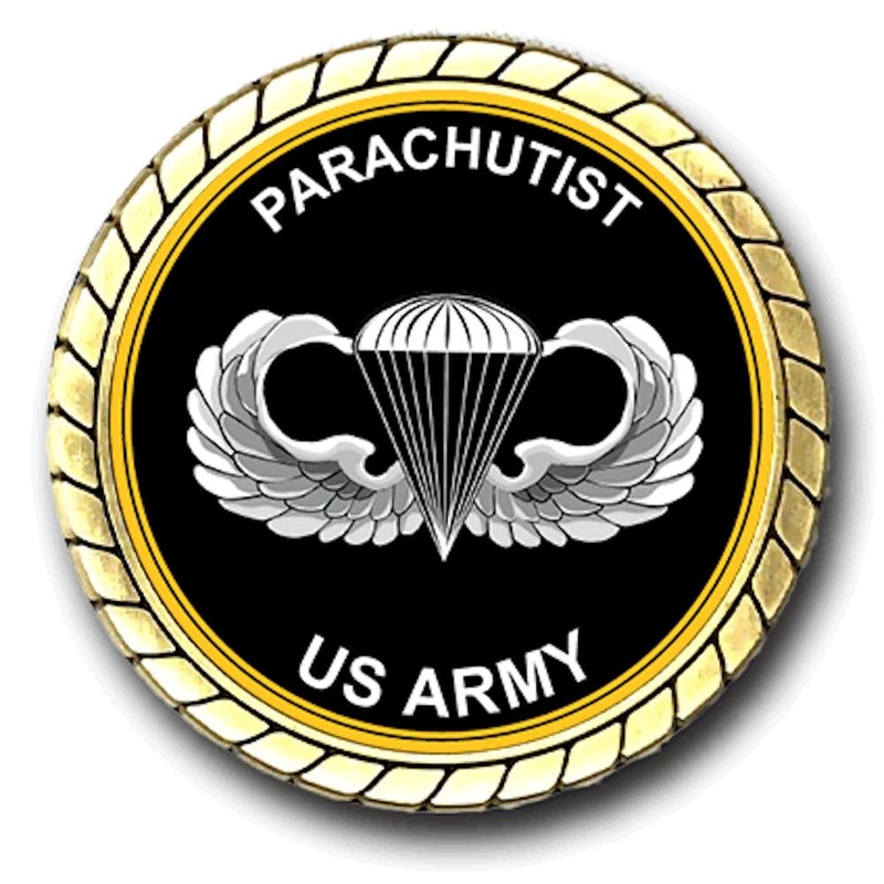 - US Army Badge challenge coin with the Army logo on one side and the Badge emblem on the other side.
