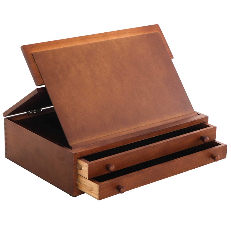 US Art Supply Walnut 2-Drawer Adjustable Wooden Storage Box with Fold Up Solid Drawing Easel