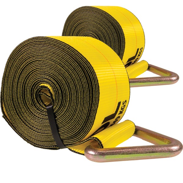 - TOUGH NYLON STRAP - These winch straps are made with a 4-inch-wide durable yellow polyester webbing that has a break strength of 20,000 pounds.
