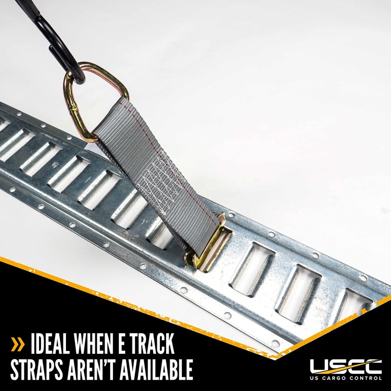- CONVENIENT - These e track straps are handy when e track ratchet straps or other e track tie downs are not available so you can utilize existing E Track rails in your enclosed van, truck, or trailer to secure cargo for transit.