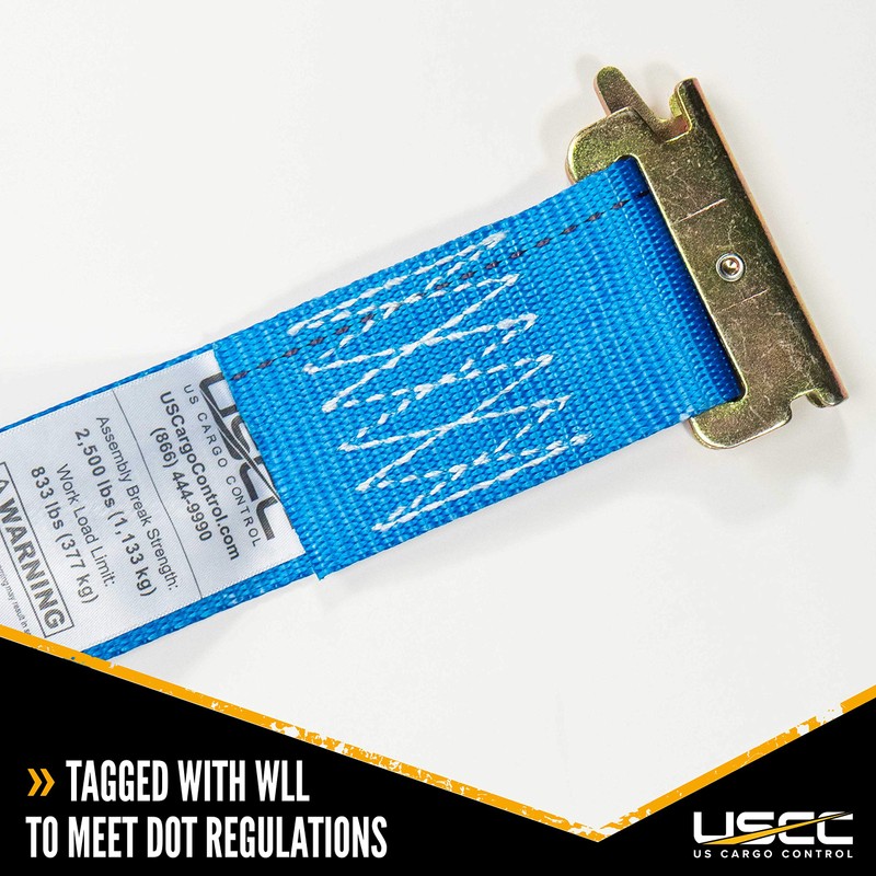 - QUICK IDENTIFICATION - Our ETrack Cambuckle Straps are labeled with their working load limit to meet CVSA guidelines, DOT regulations, and WSTDA, CHP & North American Cargo Securement standards.