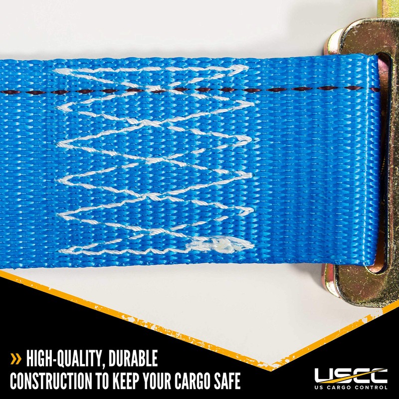 US Cargo Control E Track Cam Buckle Strap - 2 Inch X 20 Foot Blue E Track Strap - Spring E Fittings - Easily Secure Cargo in an Enclosed Van Trailer - 833 Pound Working Load Limit - 2 Pack