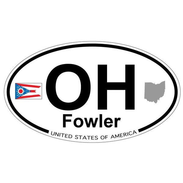 US Decal, Inc. Fowler, Ohio Oval Sticker with State Flag