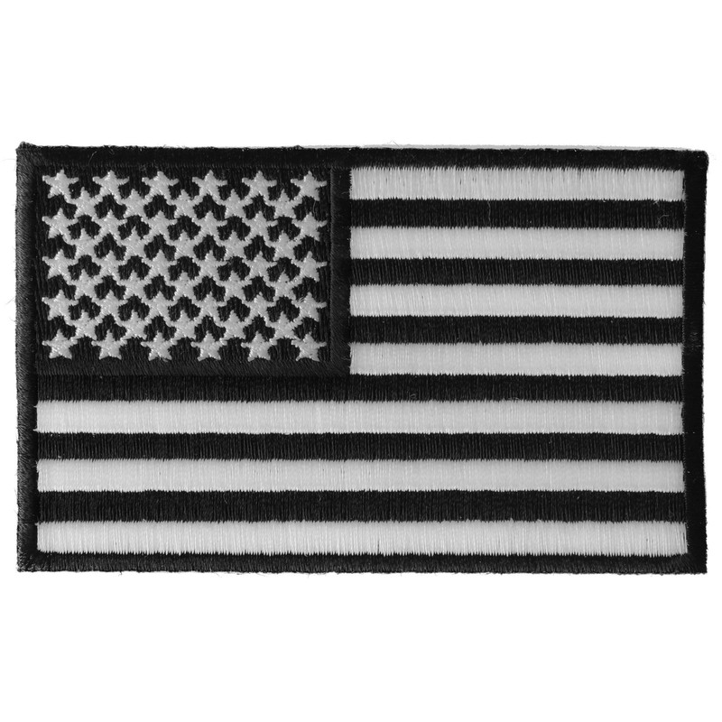 US Flag Black White Patch 4 Inch - 4x2.5 inch. Embroidered Iron on Patch