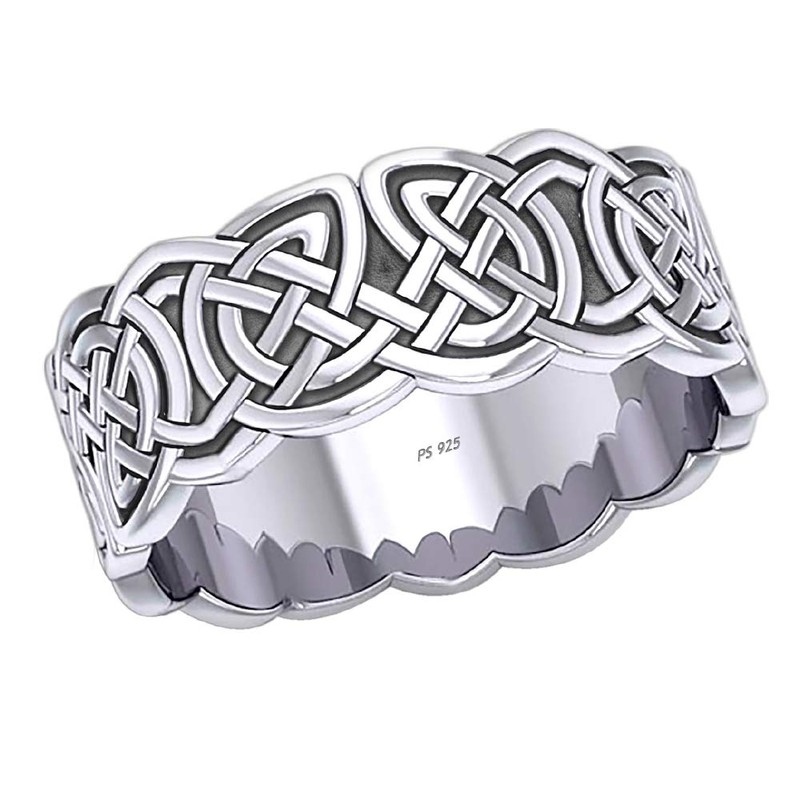 US Jewels Men's 0.925 Sterling Silver Irish Celtic Endless or Love Knot Ring Band, 8