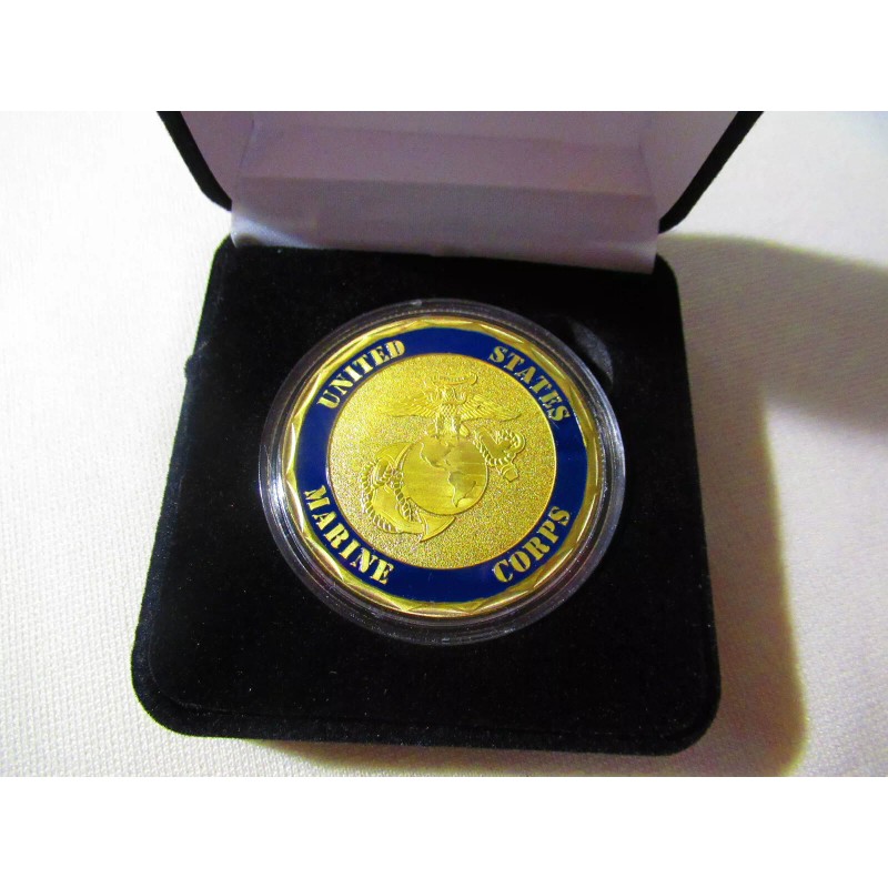 This is a great looking 11th Marine Regiment commemorative challenge coin. Coin is about 1 9/16" in diameter and raised lettering. This coin has the regiment insignia on the front and a US Marine Corp golden raised logo on reverse side. Coin is contained in an acrylic air tight holder and displayed in an attractive black velvet presentation box which will make this a very impressive gift.