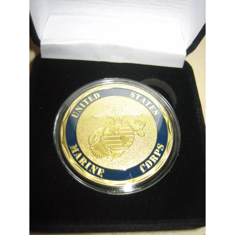 This is a great looking 12th Marine Regiment commemorative challenge coin. Coin is about 1 9/16" in diameter. This coin has a 12th Marine Regiment insignia on front in raised lettering and the Marine Corps logo on the reverse. Coin is contained in an acrylic air tight holder and displayed in an attractive black velvet presentation box which will make this a very impressive gift.
