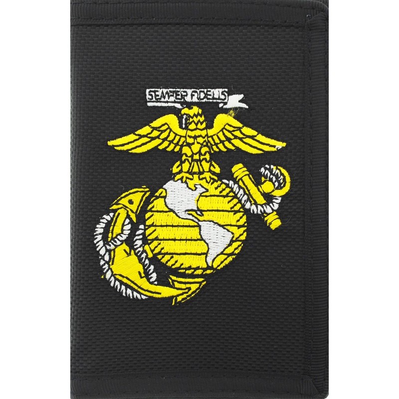 US Marines Semper Fidelis EGA Eagle Globe Anchor Trifold Wallet Black Gold USMC