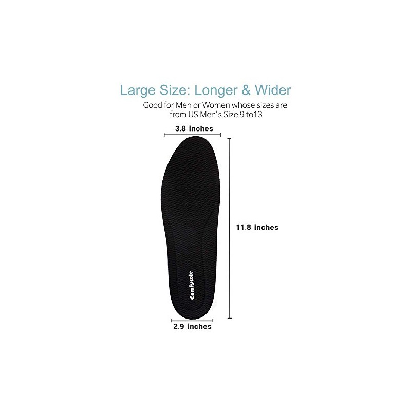 **PRODUCT OVERVIEW** Quantity : 1 pair(right and left) Materials : Polyurethane(bottom), Mary Mash(upper) **Large(US Men’s Size 9-13 or 260-300mm)** , Medium(US Men's Size 7.5-10.5, Women's 9-12.5 or 250-280mm), Small(US Men's Size 5.5-7.5, Women's 6.5-9 or 230-250mm) **Description** Do you think you would look better or cooler if you were 1 inch taller? Do you have wide feet so the usual elevator insoles don’t fit? Do you need insoles that are longer than 11 inches? Get these wider and bigger insoles to increase your height. They are not only firm and long-lasting but also amazingly comfortable to wear. Be sure to use with shoes that are half a size or a size bigger, ideally high top sneakers or boots, to have room for the inserts. Throw these in and you’ll enjoy being 1 inch taller without anyone else knowing.