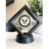 This is a great looking US NAVY commemorative challenge coin. It has a great looking Navy emblem on the front side while the reverse side is gold plated with the Great Seal of the United States. Coin has reeded edges and is about 1 9/16" in diameter. All details are raised lettering.