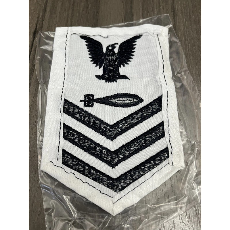 US Navy Petty Officer First Class Rate Badge Torpedo Man White Blue NOS