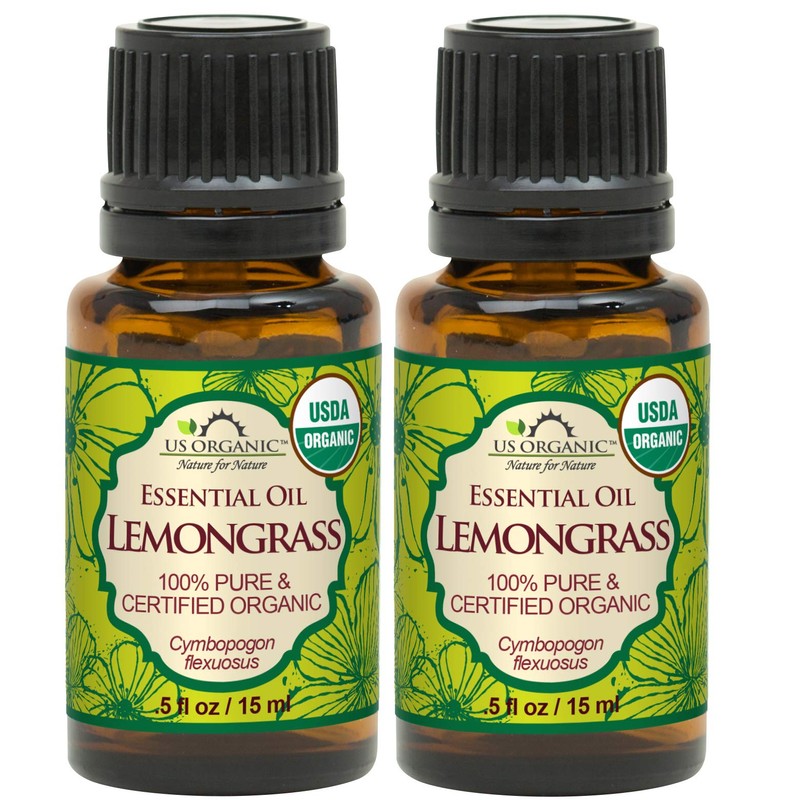 US Organic 100% Pure Lemongrass Essential Oil, USDA Certified Organic, Extracted by Steam Distillation Method, for Hair, Nail Polish Remover, Bees Attraction, and More. 15 ml, Value 2 Pack
