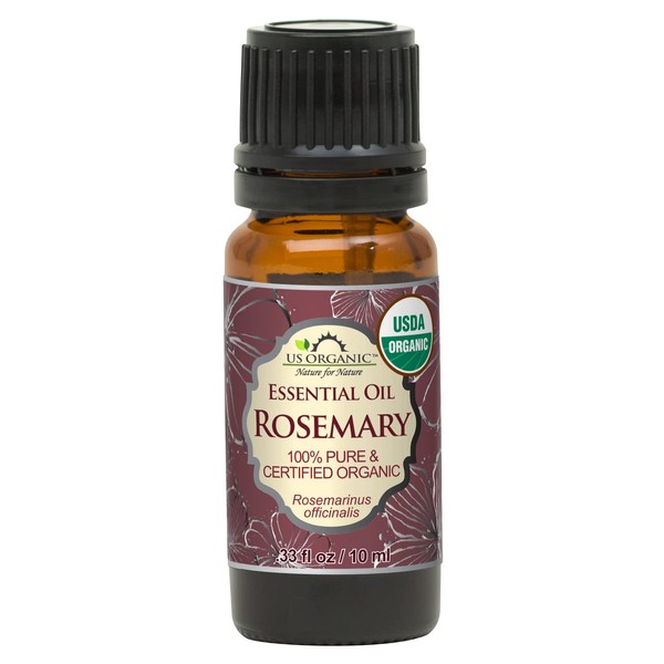 US Organic 100% Pure Rosemary Essential Oil, USDA Certified Organic 100% Pure, Steam Distilled, for Hair Growth, Scalp, Face, Skin, and Aromatherapy (Size Variations Available) (10 ml)