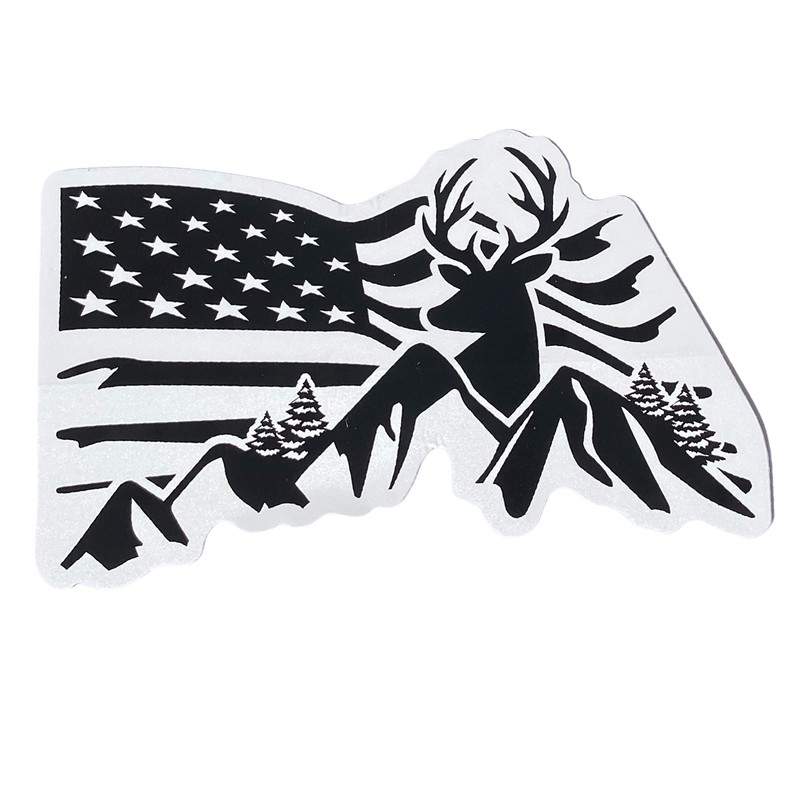 US Patriotic American Flag Sticker Mountain Deer Hunting Buck Antler Stickers 3 x 5 Inches Automotive Decals Waterproof Vinyl Decal for Truck Jeep Car RV Rear Window Bumper Camping Cooler
