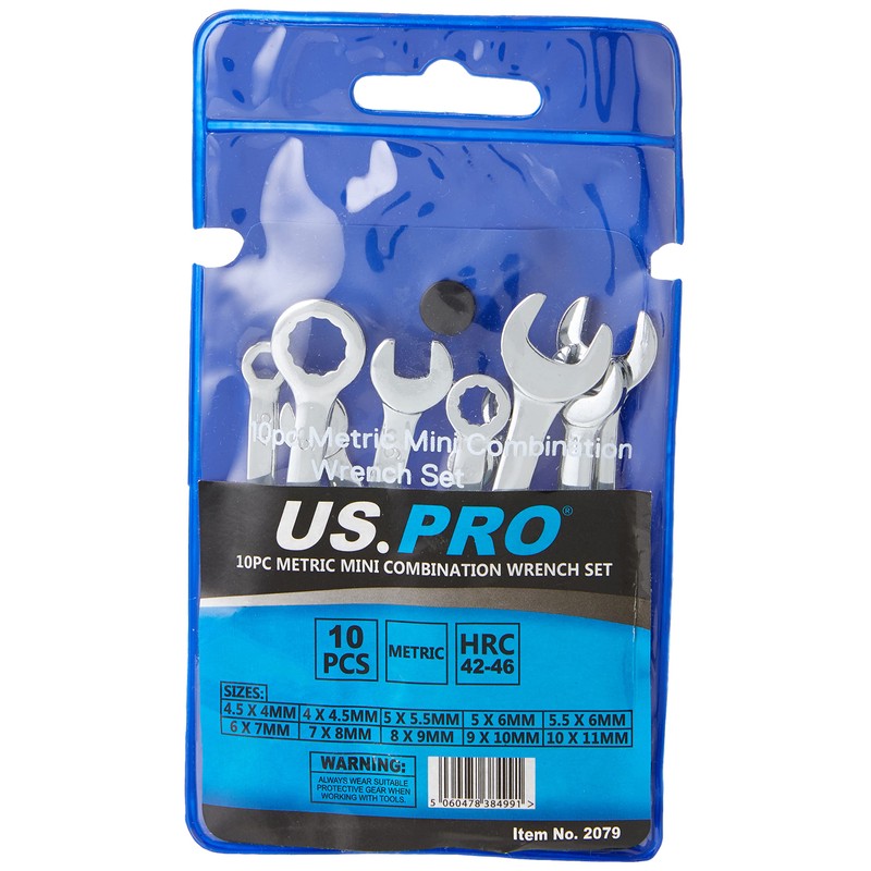 US PRO 2079 10pc Mini Metric Combination Spanner Set 4-11mm, Chrome
