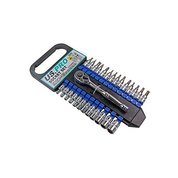US PRO 27pc 1/4" Dr 6 Point Socket Set Torx Hex & Bit Set CRV Sockets New 3249