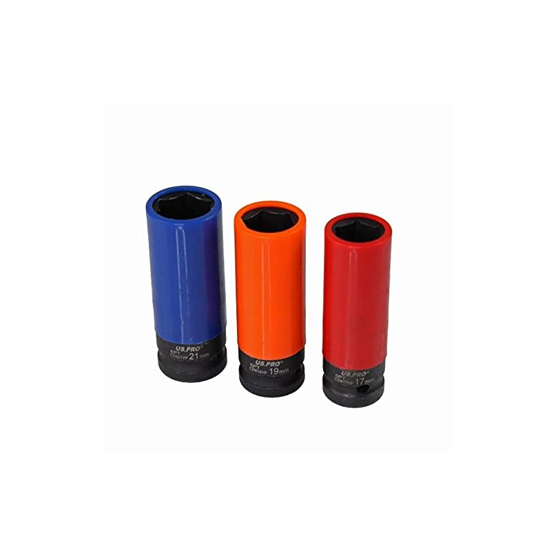 US Pro 3PC 1/2''Dr Deep Impact Sockets for Alloy Wheels 17 19 21mm Thin Wall