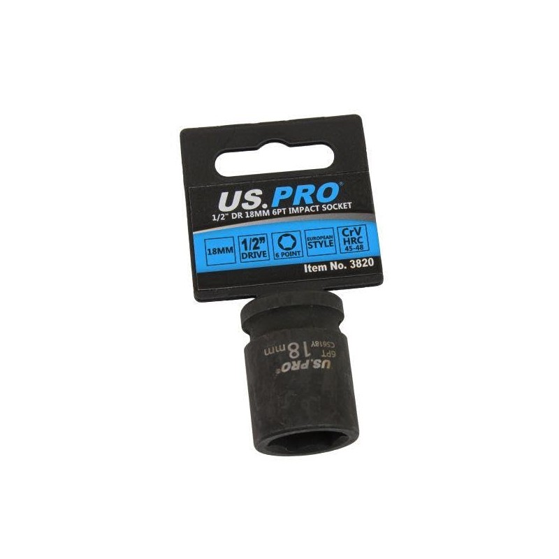 US PRO Tools 18mm Impact Socket 1/2" Drive 6 Point Single Hex 3820