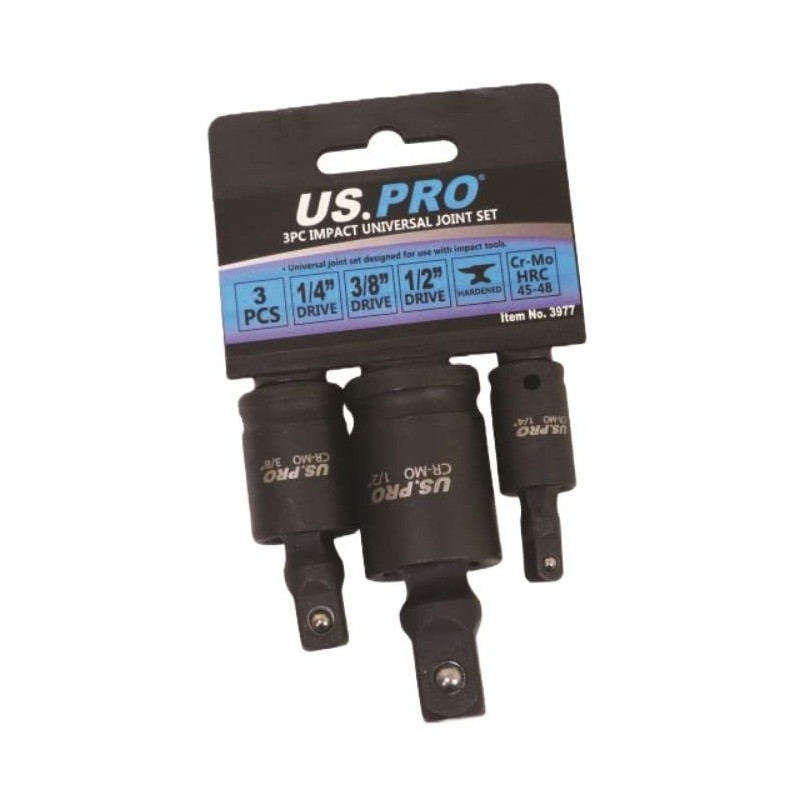 US PRO Tools 3pc Impact Universal Wobble Joint Set 1/4", 3/8",1/2" Drives 3977
