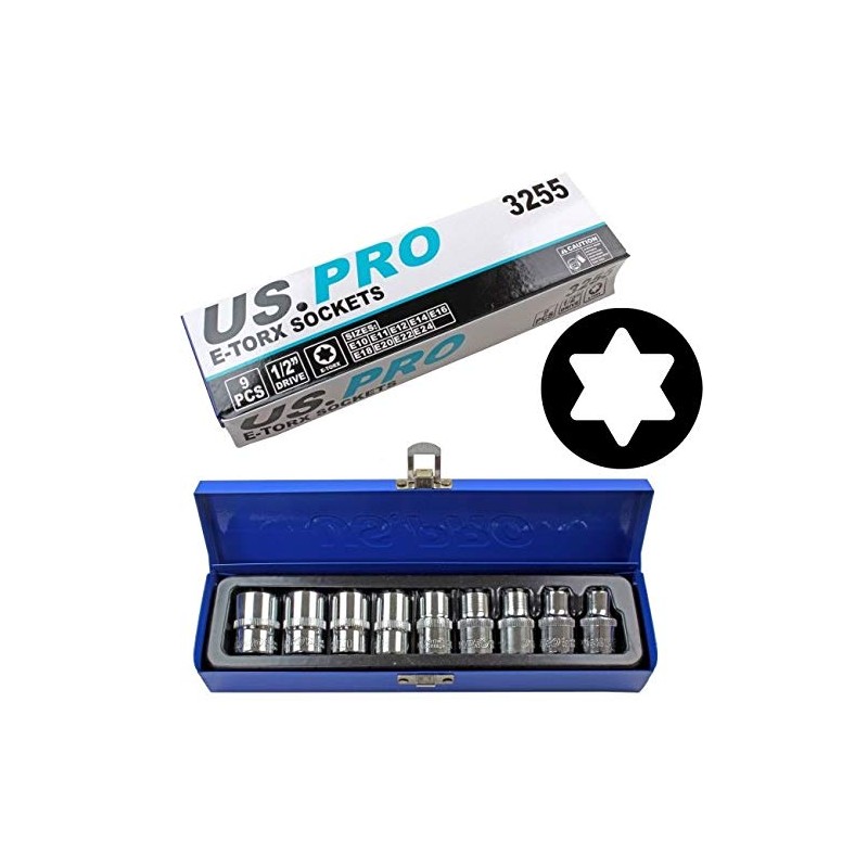 US PRO Tools 9pc 1/2" Dr Female Torx E-TRX Star Socket Set E10-E24 B3255