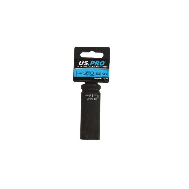 US PRO Tools Single 19MM 1/2 DR 12pt Deep Impact Socket Metric 3862