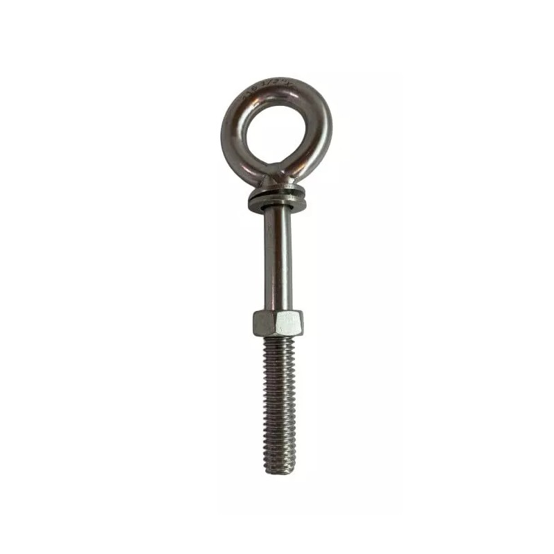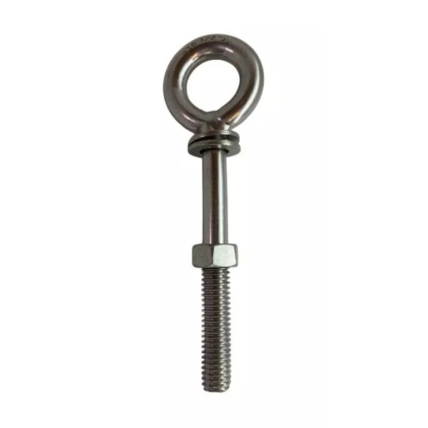 This is for one (1) quality marine grade stainless steel (AISI 316) eye bolt short thread. Each bolt is laser etched with the grade of 316 and the imperial size. The eye bolts are made in the imperial style of 1/2" UNC (1/2"-13 pitch). Each eye bolt comes with two imperial washers and one imperial nut. The length measurement is the total length of the eye bolt (6"). The threaded section is 2.5" long. Not to be used for overhead lifting. AISI 316 stainless is a premium grade of stainless and is considered by many to be best in class. 316 stainless is corrosion resistant and very durable even in the harshest of conditions. Breaking Load of 9150lbs