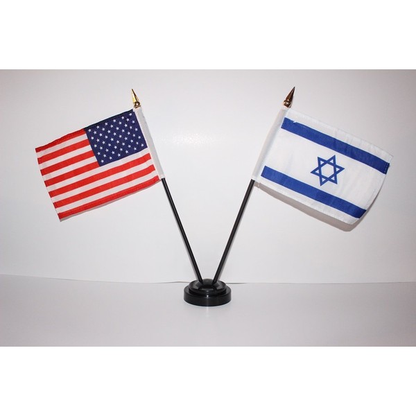 US USA American and Israel Israeli Star Of David Jewish 4"x6" Miniature Flags Desk Set with Gold Base