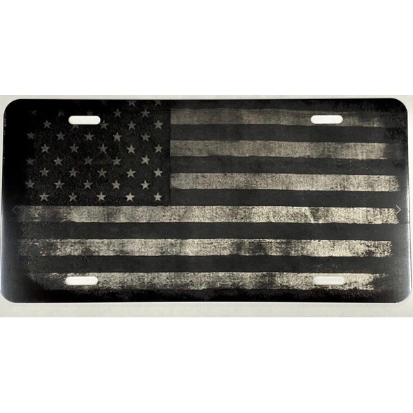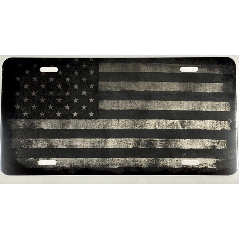 US USA Rustic American Flag Car Tag Laser Engraved Matte Black License Plate