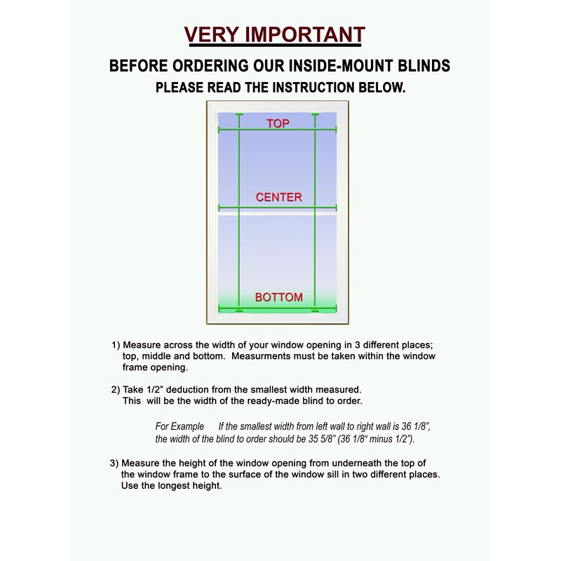 - Fit windows at the widths between 18 7/8" - 19 1/8". (Actual blind size is 18 1/2" x 60").