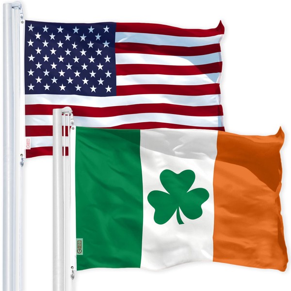 USA American & Ireland Irish Shamrock Flags 3x5 FT Combo Printed 150D Polyester By G128