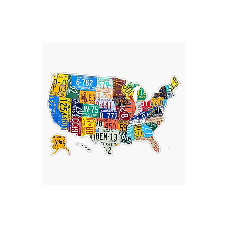 Usa License Plate Map Funny Vinyl Decal Wall Laptop Bumper Sticker 5"