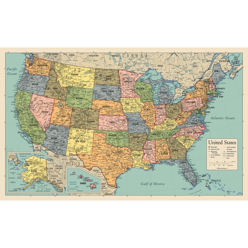 Palace Learning USA Map Poster - United States Map Chart [Green/Color]