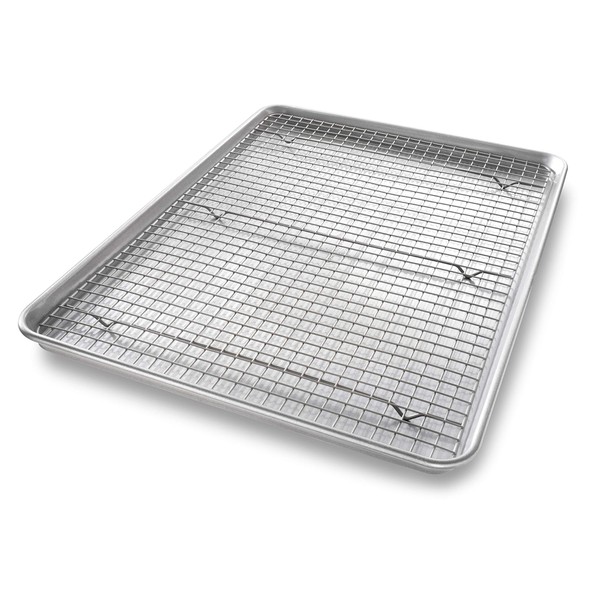 USA Pan 1607CR Bakeware Extra Large Sheet Baking Pan and Bakeable Nonstick Cooling Rack Set, XL, Metal