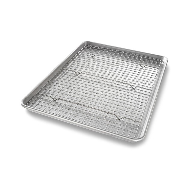 USA Pan Bakeware Half Sheet Baking Pan and Bakeable Nonstick and Cooling Rack Set, Metal
