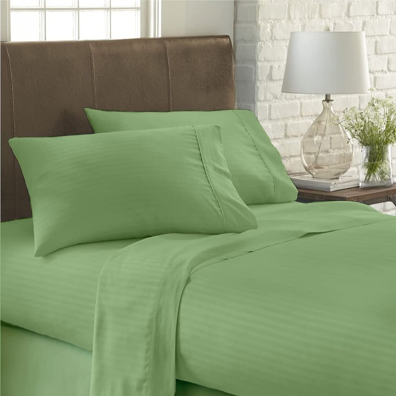 - 400-Thread Count 100% Egyptian Cotton Short Queen-Sage Green Stripe Sheet Set includes: 1 Flat Sheet 90" X 102", 1 Fitted Sheet 60" X 75", 2 Pillowcases 20" X 30". All round elastic Fitted Sheets with 10-Inch deep pockets are generously sized to fit extra deep and pillow-top mattresses.