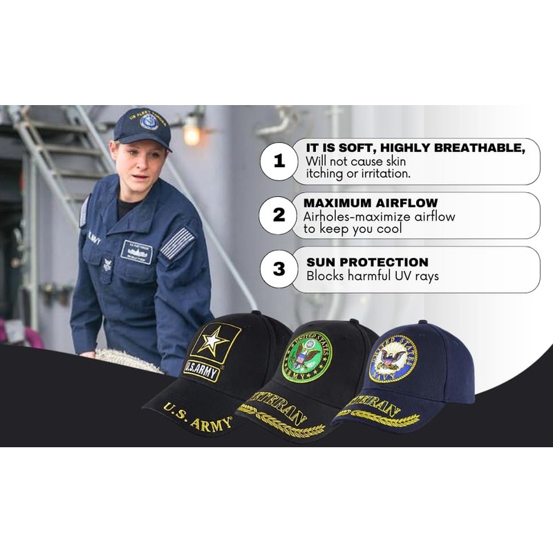 - Material de alta calidad: sombrero de veteranos de la Fuerza Aérea de los Estados Unidos hecho con 100% algodón, está bordado con letras en la parte delantera y trasera, en el sombrero es un patriótico sencillo del amor para el país.