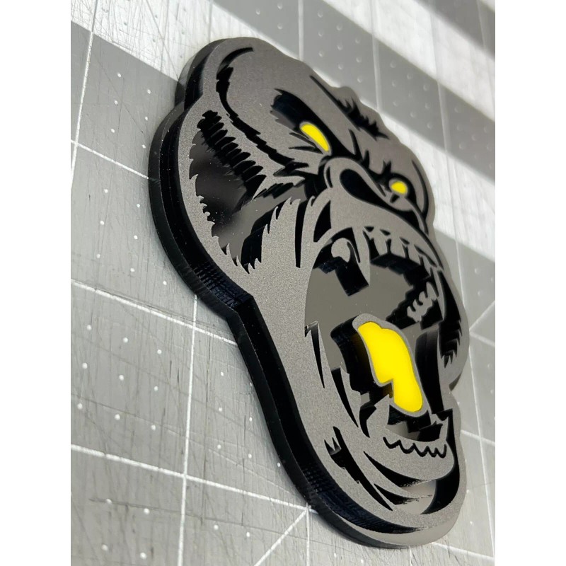 UsaStandard Angry Gorilla Yellow Eye Car Truck Emblem Badge Matte Black/Black Custom PK of 2