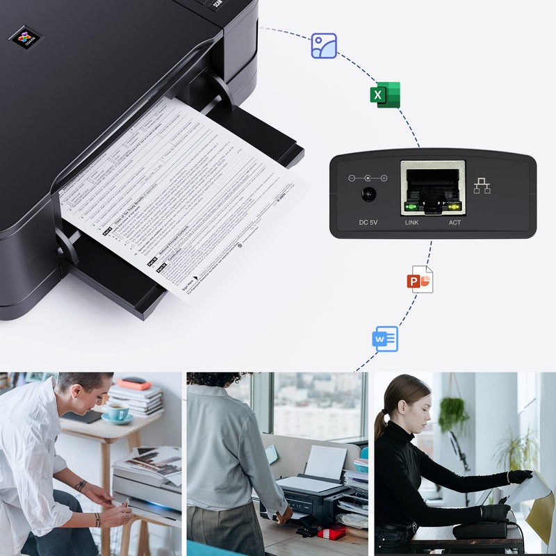 - ⭐Share A Printer: Tired of maintaining the printer's host PC? Wavlink print server converts an old USB printer into a network printer, sharing a USB printer with multiple users over an Ethernet. No additional printers are needed and save money, space and less cable mess.