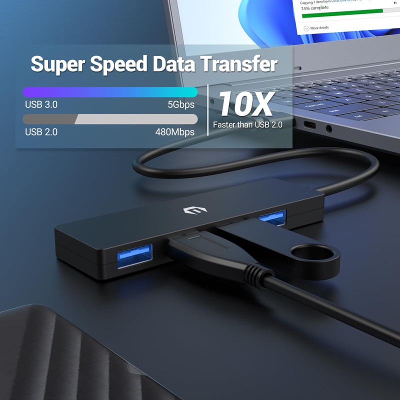 - 【Ultra Compact & Advanced Chip】: Our ultra-slim USB hub is designed to be highly portable, weighing only 50g/0.1lbs and no larger than a smartphone. It's the perfect choice for business travelers or anyone on the go. The hub features an advanced chip with excellent thermal design, ensuring its stability and preventing overheating even during extended use.