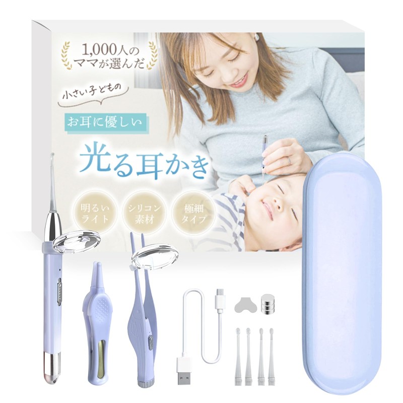 - 耳の中をしっかりと照らしてくれる明るいLEDライトが搭載された耳かきです。 暗くて見えにくい部分も簡単に確認できるので、安心して耳掃除ができます。 特に、柔らかいシリコン素材の先端は小さなお子さまのお耳にも優しく、安心してお使いいただけます。
