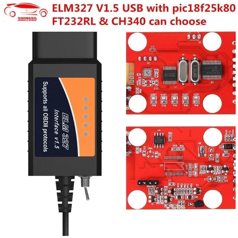 - Ford, Mazda, Lincoln araçların bazı modellerine uyumlu OBD2 arıza tespit cihazı ELM327. 25K80 ve CH340 çiplidir.